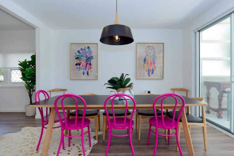 The More, The Merrier The dining room decor up for grabs go beyond just table and chairs, by making space for additional features can make a difference in the final look. The use of lively curtains can bring the space to life and can maintain a consistent design throughout the whole house. There is also the option to hang some fixtures that bring out the best lighting to showcase a bold or cosy dining area. With oversized art, you can also hang the piece in front of the table to catch the eye and add a creative touch. The inclusion of centrepieces can also display a homely feel and can blend in well with the established colours. The extension of a more casual sunroom could also be considered as a new approach to building a more relaxed space with fresh designs.